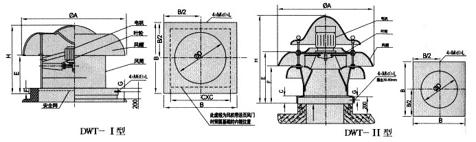 低噪聲屋頂風機系列 » DWT-Ⅱ型離心式屋頂風機